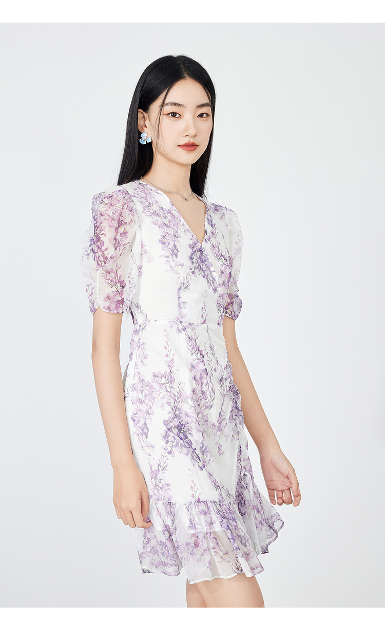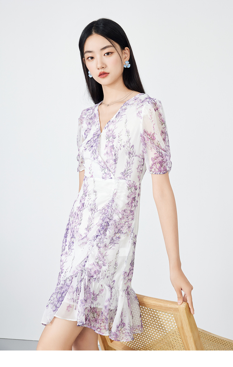 A riot of beauty blooms in the summer, spreading across the light chiffon, creating a cool, fresh, and soft feeling. This series of printed chiffon dresses offers a soft, enveloping feel.